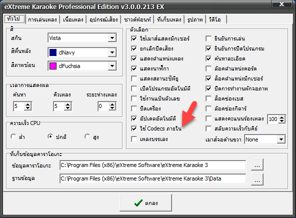 ตัวเลือกกรณีต้องการใช้งาน codec จากภายนอกที่ติดตั้งเพิ่มเติม โดยปกติโปรแกรมรุ่นนี้สามารถเล่นไฟล์ได้ทุกชนิดโดยไม่ต้องติดตั้ง codec ครับ